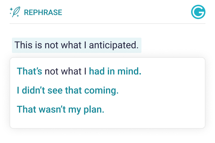 Let the magic of Ginger’s AI suggest inspiring alternatives for conveying your intended message.